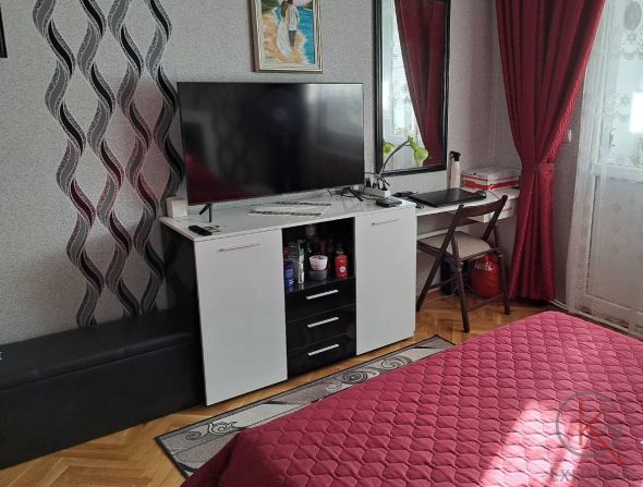 Предлагаме за продажба четиристаен апартамент в района на Болницата с площ от 101 кв.м. на втори жилищен етаж. Състои се от две спални, хол, кухня, трапезария, две бани, две тоалетни, три тераси и две мази. Изложението е запад, север и юг. Жилището е с подменена дограма и вътрешна изолация. Подовите настилки са естествен паркет, теракот и мозайка. Апартамента е газифициран. Сградата е санирана с контролиран достъп . Отоплението е решено посредством климатици. Продава се с наличните мебели и електроуреди.