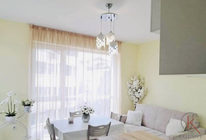 Продава се двустаен апартамент ново строителство в желания за живеене кв. Победа. Апартаментът се предлага обзаведен готов за живеене. Жилището има следното разпределение изключително лънчева уютна и просторна дневна с кухненки бокс, от която се излиза на великолепна тераса, модерна хубава спалня която също има просторна тераса, голямо входно антре, модерни баня и тоалетна по последни модни тенденции. Сградата е луксозна и се намира в близост до училища, големи вериги магазини BILA, автобусни спирки, в близост до Гранд МОЛ и прекрасния жилищен комплекс Фанилия Гардън. Районът е газифициран, и при желание може да се отоплявате и на газ.